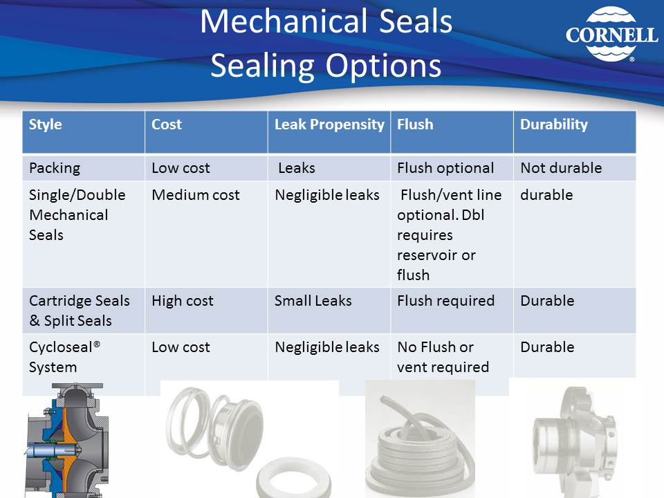 As with all mechanical seals, they require careful and informed installation, but once properly set in place, they require no additional adjustment or maintenance. Mechanical seals often present more upfront cost than packing – sometimes considerably more. However, because mechanical seals usually offer less downtime and maintenance than packing, they can save money over the life of the pump. Seals are also less tolerant to shaft deflection and misalignment, and dirty or contaminated medium.